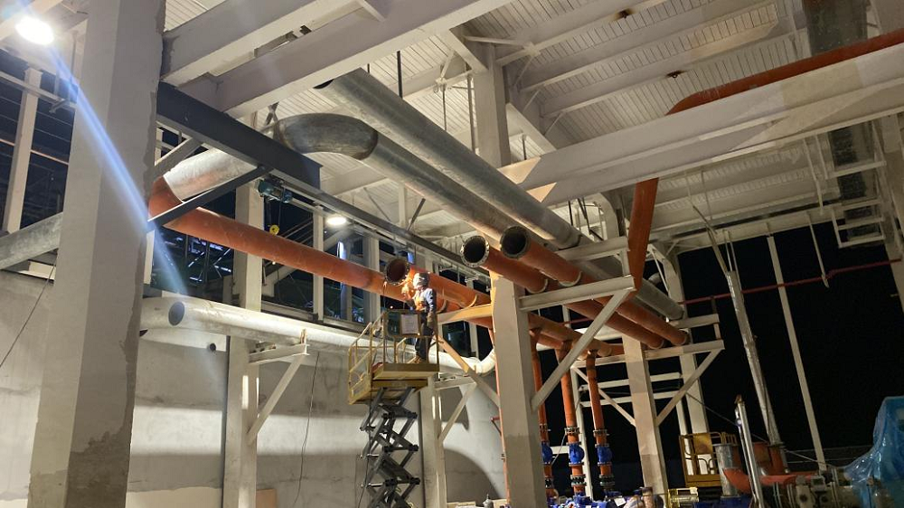 站房一(能源中心)作為整個(gè)廠區(qū)的“發(fā)動(dòng)機(jī)”,建筑面積雖僅有11000平方米,但單體機(jī)電安裝造價(jià)約8000萬元,施工內(nèi)容涵蓋空壓站、污水處理站、高效制冷機(jī)房、消防泵房及給水加壓站房等全廠幾乎所有核心“部件”。面對(duì)施工工藝復(fù)雜、工期緊、標(biāo)準(zhǔn)高且施工過程中設(shè)計(jì)變更頻繁、設(shè)備供貨周期長(zhǎng)、資金不到位等多種不利因素,項(xiàng)目部積極想辦法克服困難,采取主動(dòng)對(duì)接各方資源,深化設(shè)計(jì)確認(rèn)、督促設(shè)備批量排產(chǎn)、加快技術(shù)交底完成、倒排施工計(jì)劃等一系列有效措施,堅(jiān)持“搶進(jìn)度、抓質(zhì)量、保安全”核心思想不動(dòng)搖,加班加點(diǎn)推進(jìn)項(xiàng)目建設(shè)。截至目前,站房一(能源中心)形象進(jìn)度已完成55%以上,實(shí)現(xiàn)產(chǎn)能過半,為確保關(guān)鍵合同節(jié)點(diǎn)“2025年2月28日公用動(dòng)力系統(tǒng)調(diào)試完成,并具備各生產(chǎn)條件”打下堅(jiān)實(shí)基礎(chǔ)。