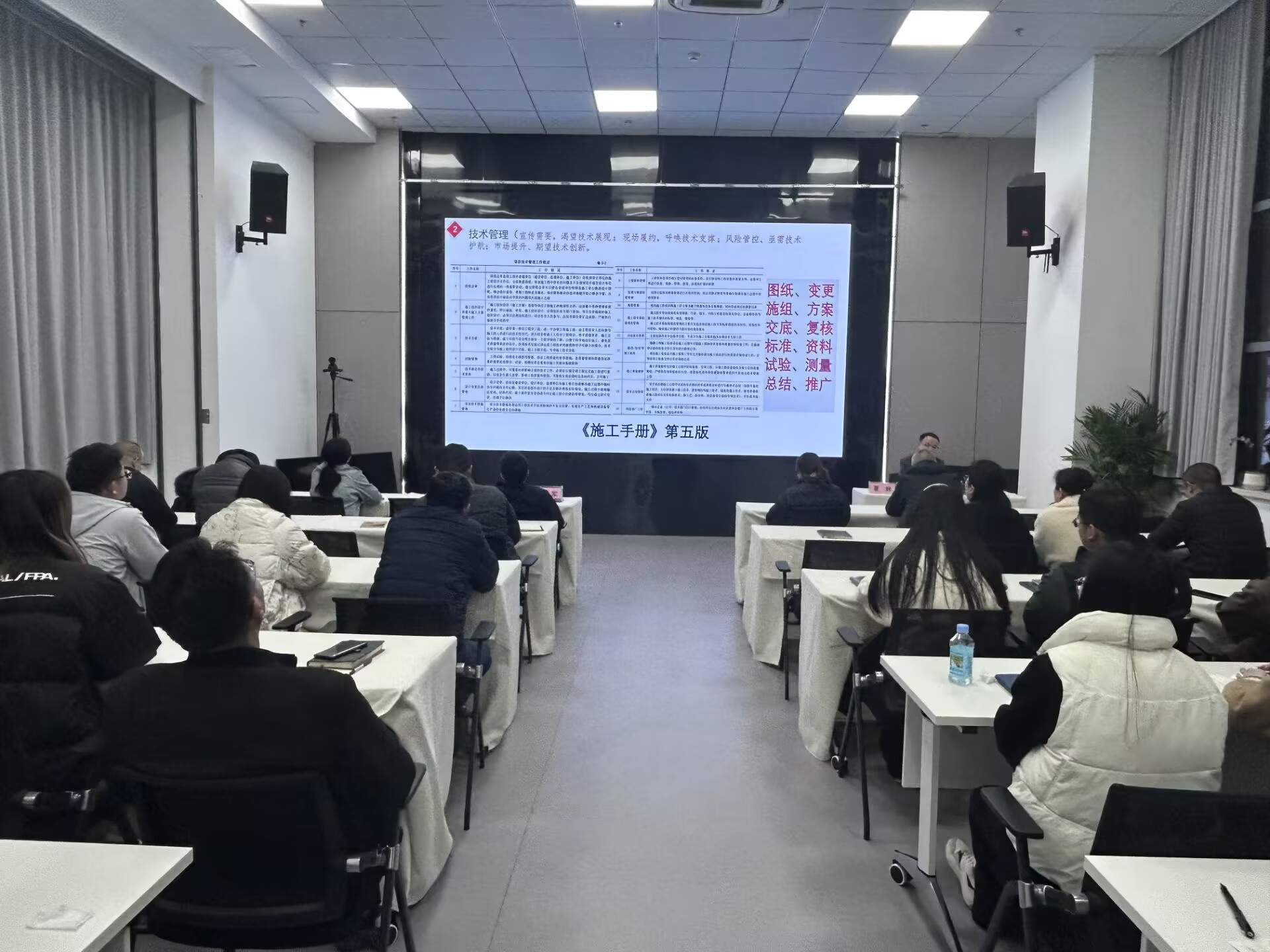 夏輝以中央發(fā)布的《一張思維導(dǎo)圖帶大家看2025年政府工作十大任務(wù)》的切入點(diǎn),強(qiáng)調(diào)了高質(zhì)量發(fā)展和創(chuàng)新驅(qū)動(dòng)的重要性。隨后他從技術(shù)管理、機(jī)電工程體系、機(jī)電工程安裝工藝細(xì)部節(jié)點(diǎn)做法優(yōu)選、AI應(yīng)用等方面對(duì)機(jī)電工程基礎(chǔ)知識(shí)進(jìn)行了細(xì)致解讀,講解了技術(shù)在企業(yè)運(yùn)營(yíng)中的核心作用。就《聚焦機(jī)電主責(zé)主業(yè) 走“專精特強(qiáng)”之路行動(dòng)方案》(第一版)與參培人員進(jìn)行深入交流。