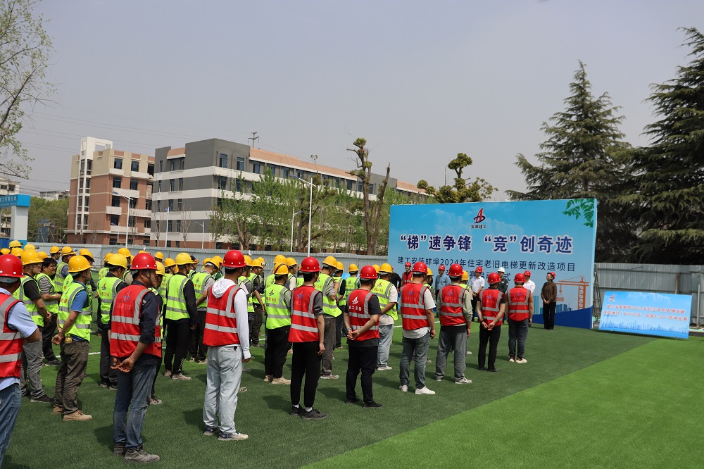 為貫徹集團和公司兩級職代會精神,落實公司勞動競賽活動相關(guān)工作要求,加快工程建設(shè)進度,不斷提高項目管理和建設(shè)水平,4月10日,建工安裝電梯分公司蚌埠2024年住宅老舊電梯更新改造項目舉行了以“梯”速爭鋒 “競”創(chuàng)奇跡為主題的勞動競賽啟動儀式,正式吹響了“大干20天,決戰(zhàn)4.30”勞動競賽的奮進號角。蚌埠市城市投資控股有限公司代表、分公司班子成員、項目部管理人員、各參建單位代表及作業(yè)人員共130余人參加活動。