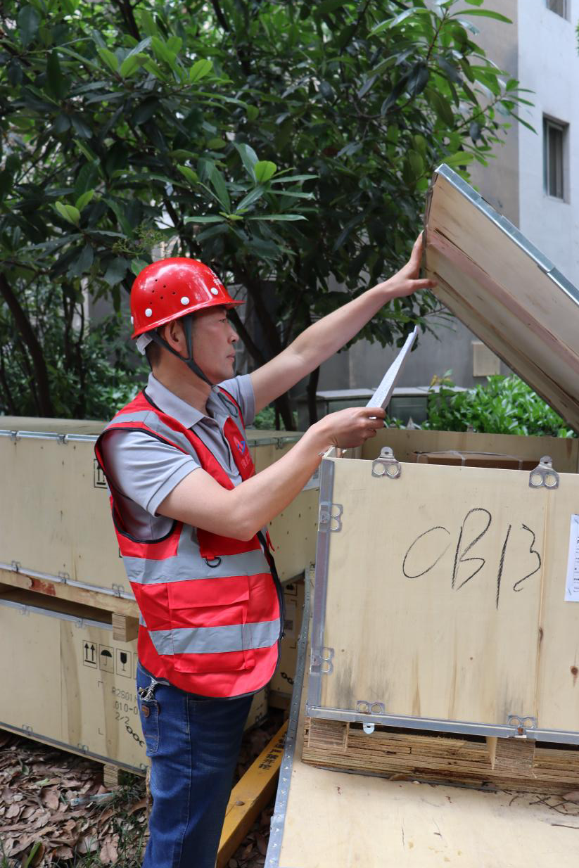 蚌埠2024年住宅老舊電梯更新改造一標段項目經理正在進行電梯開箱檢驗