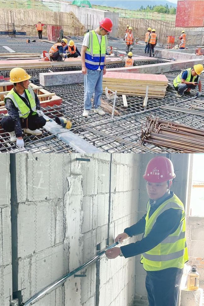 圖為涇青高速房建項目水電安裝專業分包工程項目基礎接地施工、插座點位復核