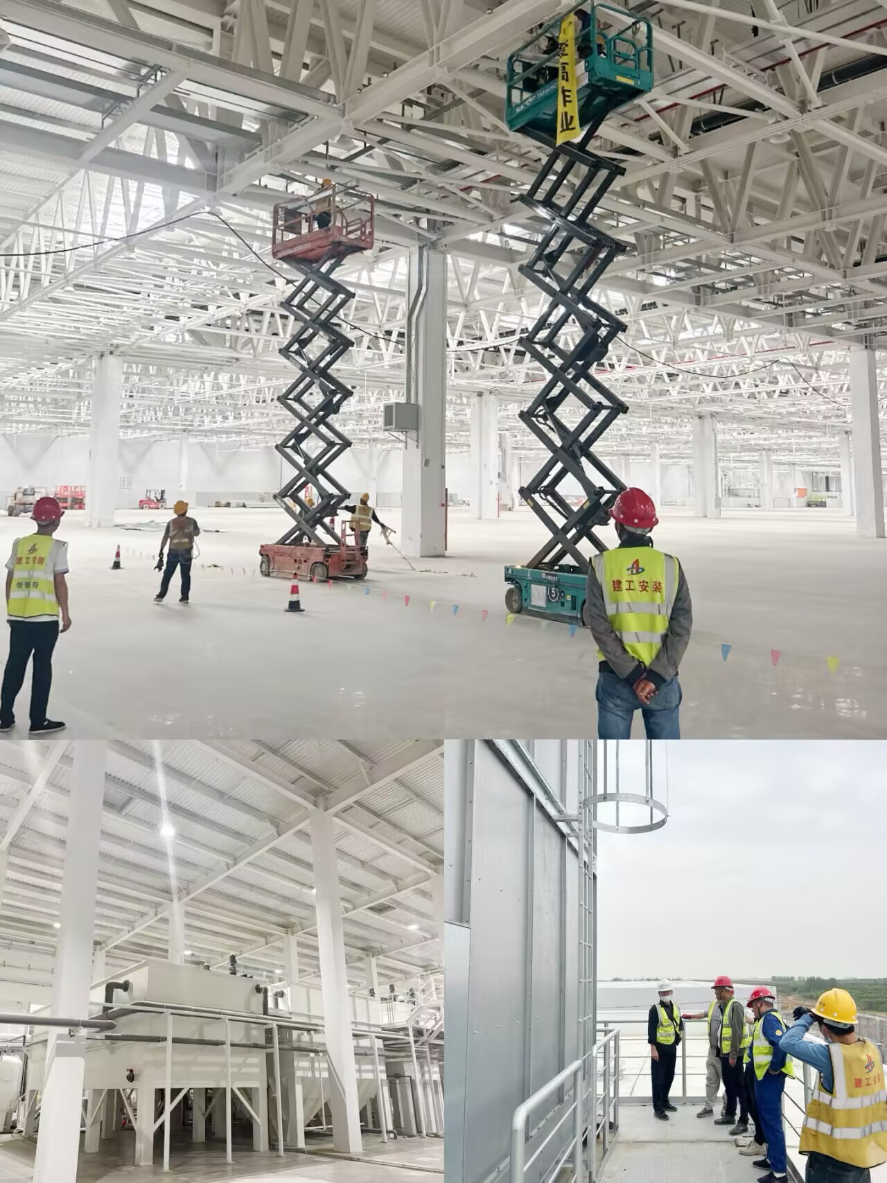 走進(jìn)項(xiàng)目施工現(xiàn)場,銀灰色的鋼結(jié)構(gòu)廠房在陽光下熠熠生輝,長達(dá)百米的標(biāo)準(zhǔn)化車間整齊排列,工業(yè)美學(xué)與實(shí)用功能完美融合。現(xiàn)場管理人員正在監(jiān)督支吊架整改安裝、冷卻塔設(shè)備避雷針安裝交底等,其中污水處理站安裝調(diào)試已完成,下一步全體人員將以高效率和高標(biāo)準(zhǔn)推動(dòng)項(xiàng)目順利通過竣工驗(yàn)收。