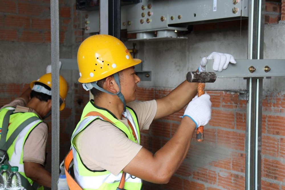 桃花科創產業園EPC項目施工人員正在調試電梯主機平衡度