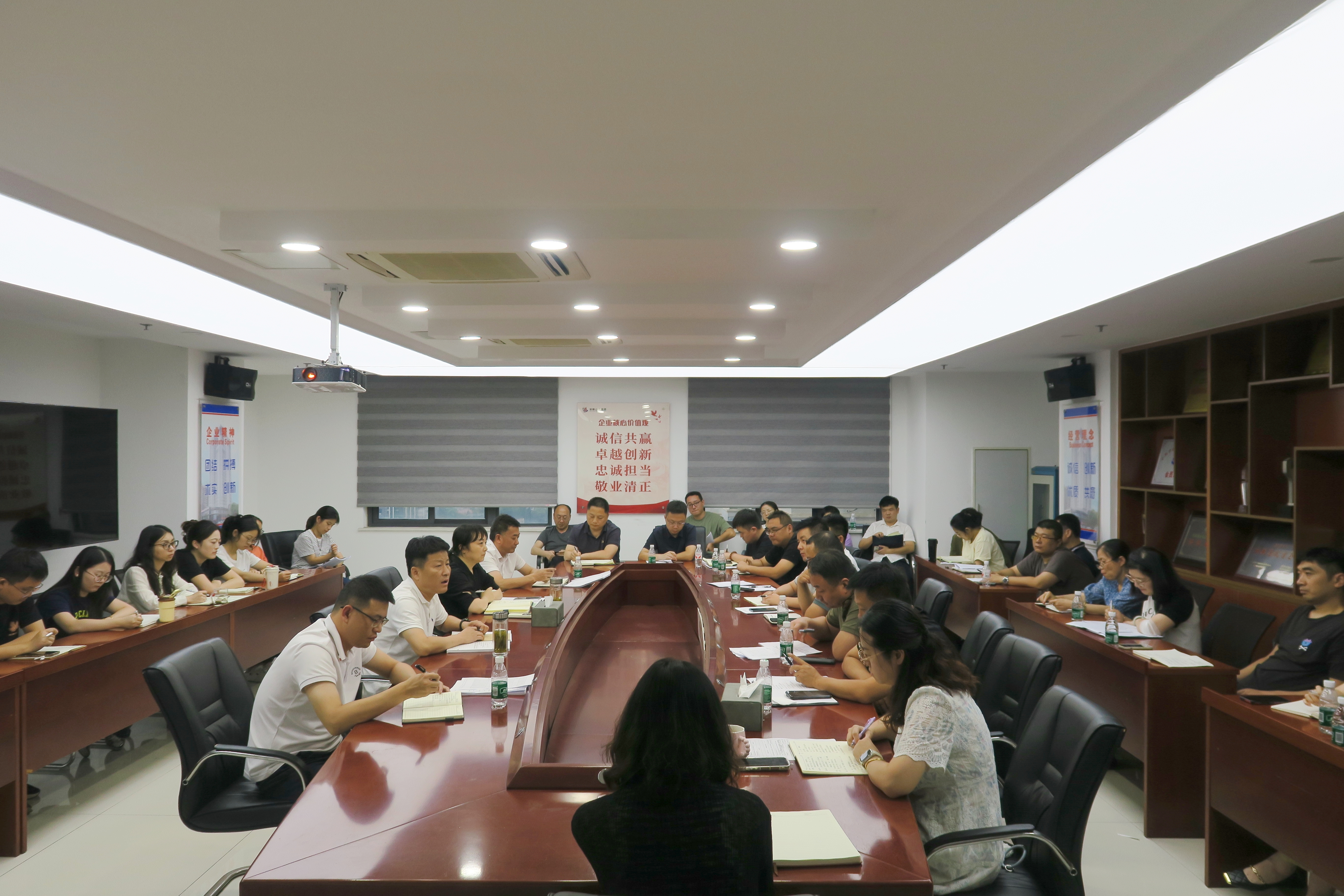 會(huì)議傳達(dá)學(xué)習(xí)了集團(tuán)及公司近期有關(guān)工作會(huì)議精神,綜合辦公室對(duì)督辦事項(xiàng)進(jìn)展情況進(jìn)行通報(bào),所屬各項(xiàng)目部、機(jī)關(guān)各部門就工作完成情況及下一步工作計(jì)劃進(jìn)行匯報(bào)。會(huì)上針對(duì)下半年生產(chǎn)經(jīng)營(yíng)重點(diǎn)工作進(jìn)行研究部署。